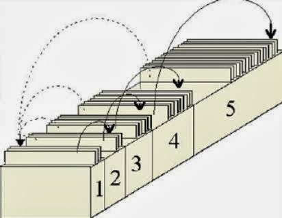 Todos os cartões que estiverem na caixa 1 serão revisados no período de um dia, assim os que responderam corretamente a pergunta(de um lado do cartão) sem olhar a resposta(do outro lado do cartão) movem-se para a caixa 2 e os que não acertaram a resposta permanecem na caixa 1 para passarem a ser revisados no dia seguinte. Agora os que passaram para a segunda caixa vão tentar responder novamente apenas no período de 2 dias, após a resposta os que acertaram migram para a caixa 3 e os que erraram voltam para a caixa 1. Agora vem o exemplo da caixa 3 quando tentar responder os cartões da caixa 3 e acertar eles migram para a caixa 4 porém se errar os cartões voltam a caixa 1. Esse é um erro comum entre as pessoas que usam flashcards geralmente elas voltam os cartões respondidos errados da caixa 3 para a caixa 2. Quando um flashcard é respondido incorretamente ele volta à primeira caixa. Assim sucessivamente até todos os cartões chegarem a caixa 5. Os exemplos de periodicidades escritos neste parágrafo são meramente ilustrativos, você deve procurar qual intervalo de tempo se molda melhor a sua necessidade de estudo.